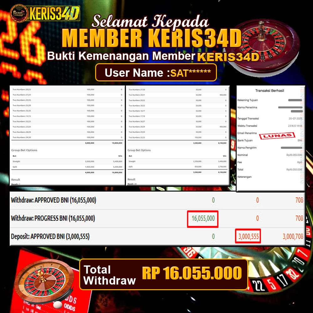 TOTAL KEMENANGAN : Rp. 16.055.000