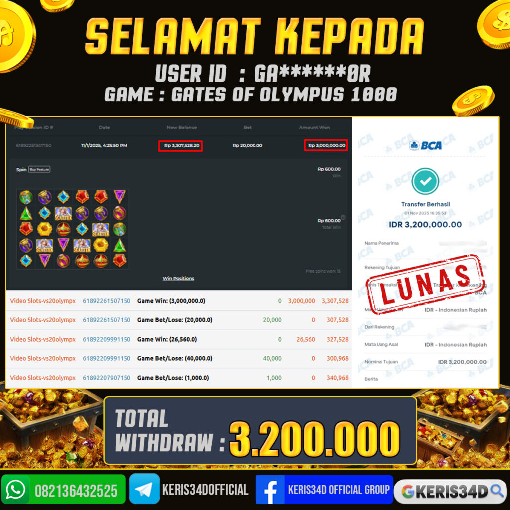 JACKPOT SLOT GACOR GATES OF OLYMPUS 1000 01 NOVEMBER 2025, Jackpot Slot Gacor, Kemenangan Slot, Bukti Kemenangan Slot, Kemenangan PRAGMATIC PLAY, Menang Slot online, Slot Gacor, Situs Aman Terpercaya, WD Berapapun Pasti DI Bayar Tuntas, Maxwin Slot Online.