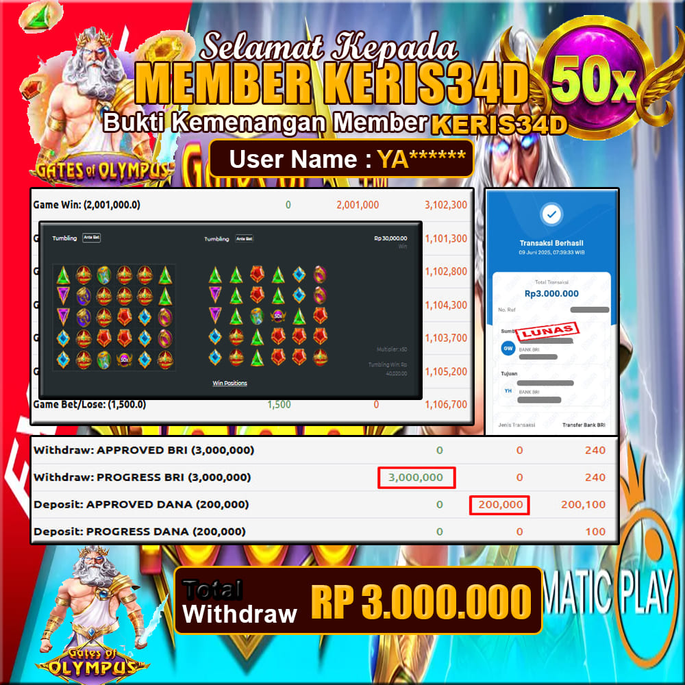 SSetiap hari, member KERIS34D berhasil meraih jackpot besar dari berbagai provider slot ternama yang kami sediakan, seperti Pragmatic Play, Habanero, PG Soft, dan masih banyak lagi. Kami secara rutin menampilkan bukti screenshot atau rekapan kemenangan yang berhasil diraih, mulai dari kemenangan ratusan ribu hingga puluhan juta rupiah. Semua slip kemenangan ini kami hadirkan untuk membuktikan bahwa di KERIS34D peluang menang itu nyata