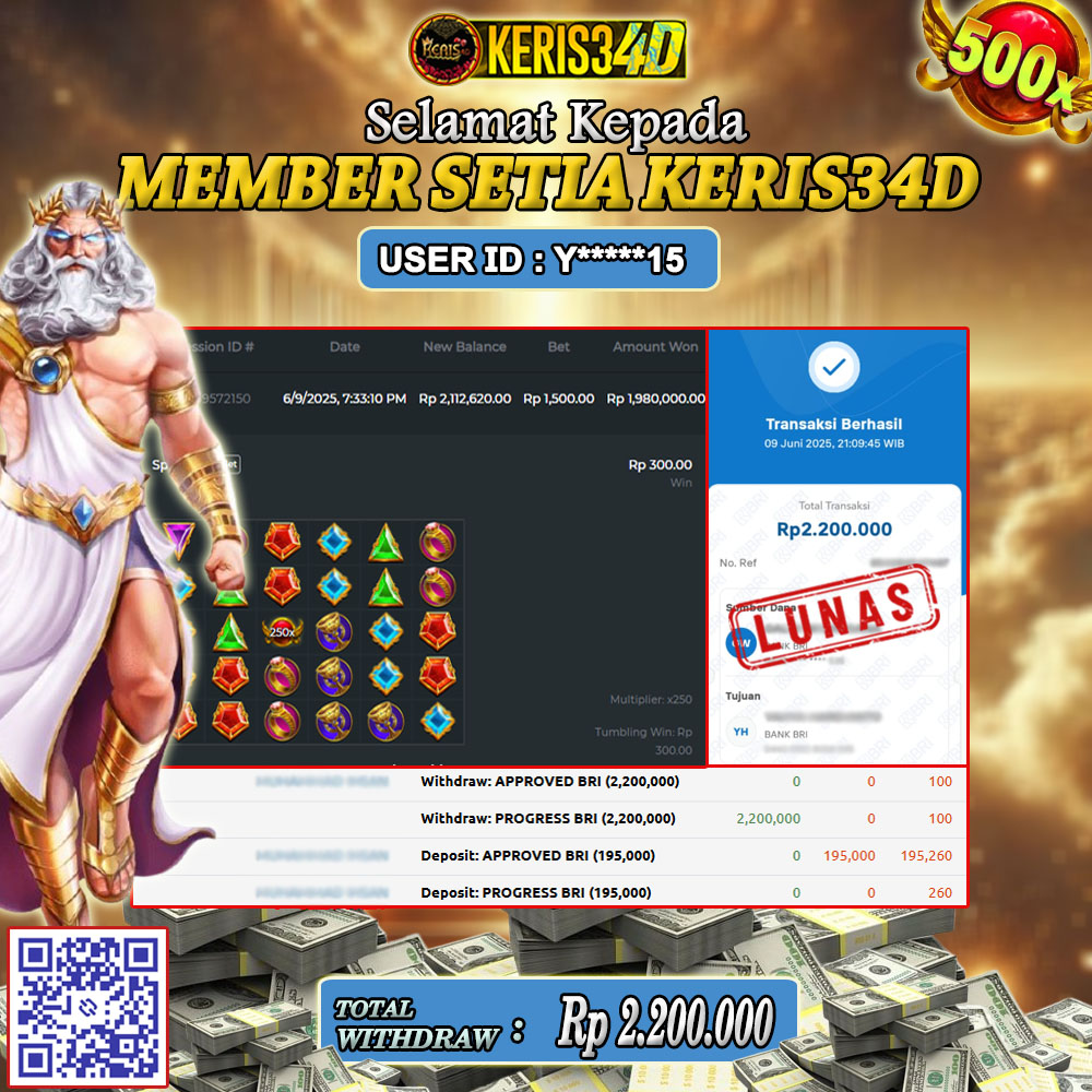 SSetiap hari, member KERIS34D berhasil meraih jackpot besar dari berbagai provider slot ternama yang kami sediakan, seperti Pragmatic Play, Habanero, PG Soft, dan masih banyak lagi. Kami secara rutin menampilkan bukti screenshot atau rekapan kemenangan yang berhasil diraih, mulai dari kemenangan ratusan ribu hingga puluhan juta rupiah. Semua slip kemenangan ini kami hadirkan untuk membuktikan bahwa di KERIS34D peluang menang itu nyata