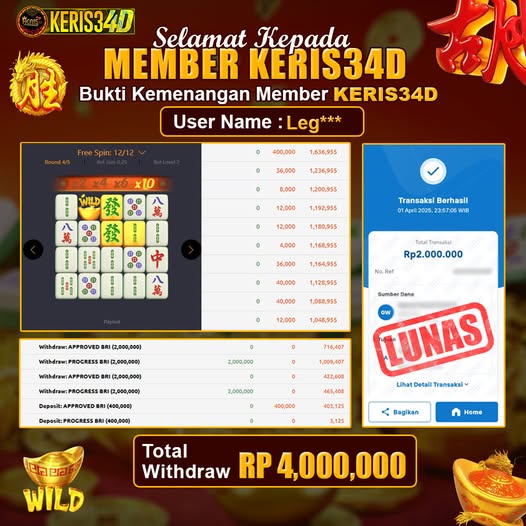 KERIS34D dikenal sebagai situs terpercaya yang selalu menghadirkan pengalaman bermain slot online yang aman, fair, dan berlisensi resmi. Di sini, kami tidak hanya sekadar memberikan janji, tapi bukti nyata berupa slip kemenangan yang dapat Anda lihat secara langsung.