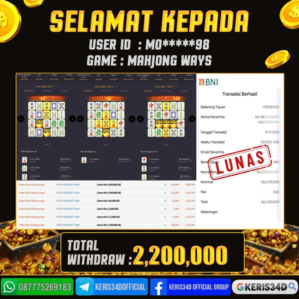 JACKPOT SLOT GACOR MAIN MAHJONG WAYS 10 NOVEMBER 2025, Jackpot Slot Gacor, Kemenangan Slot, Bukti Kemenangan Slot, Kemenangan PGSOFT, Menang Slot online, Slot Gacor, Situs Aman Terpercaya, WD Berapapun Pasti DI Bayar Tuntas, Maxwin Slot Online.