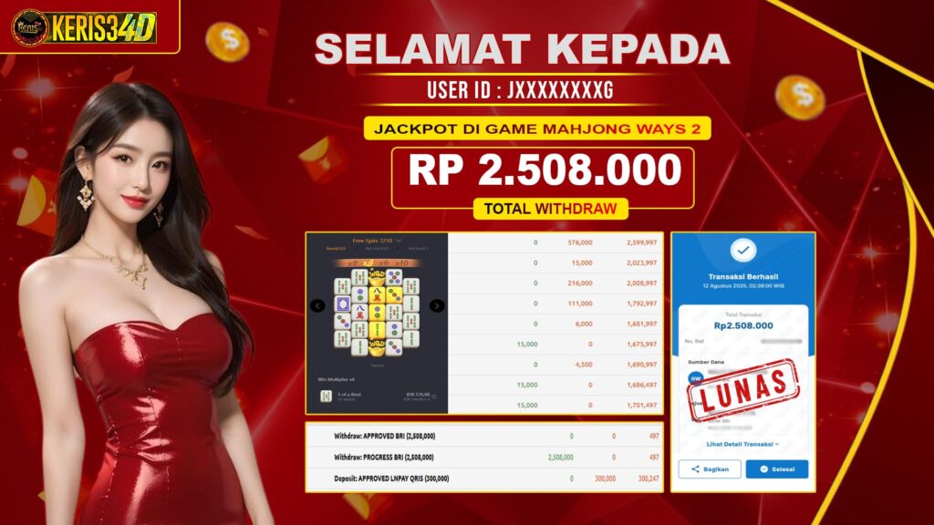 KERIS34D dikenal sebagai situs terpercaya yang selalu menghadirkan pengalaman bermain slot online yang aman, fair, dan berlisensi resmi. Di sini, kami tidak hanya sekadar memberikan janji, tapi bukti nyata berupa slip kemenangan yang dapat Anda lihat secara langsung.