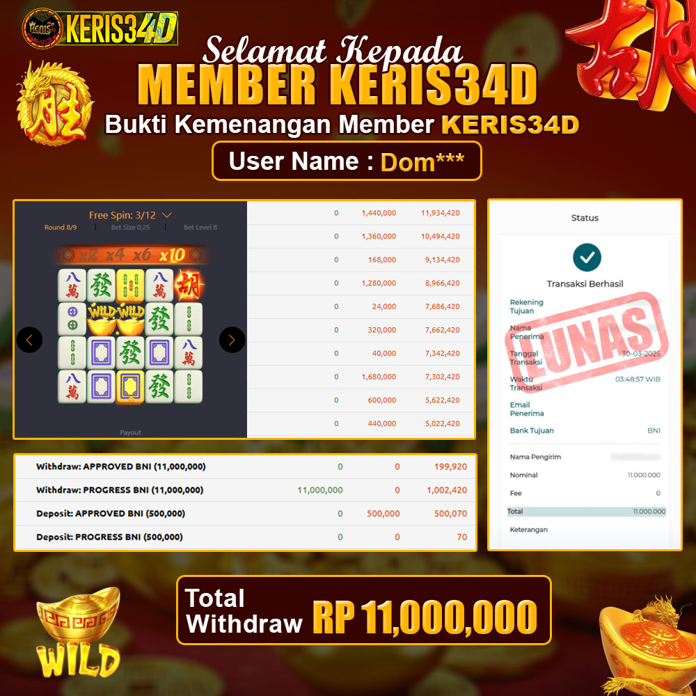 TOTAL KEMENANGAN : Rp. 11.000.000,-