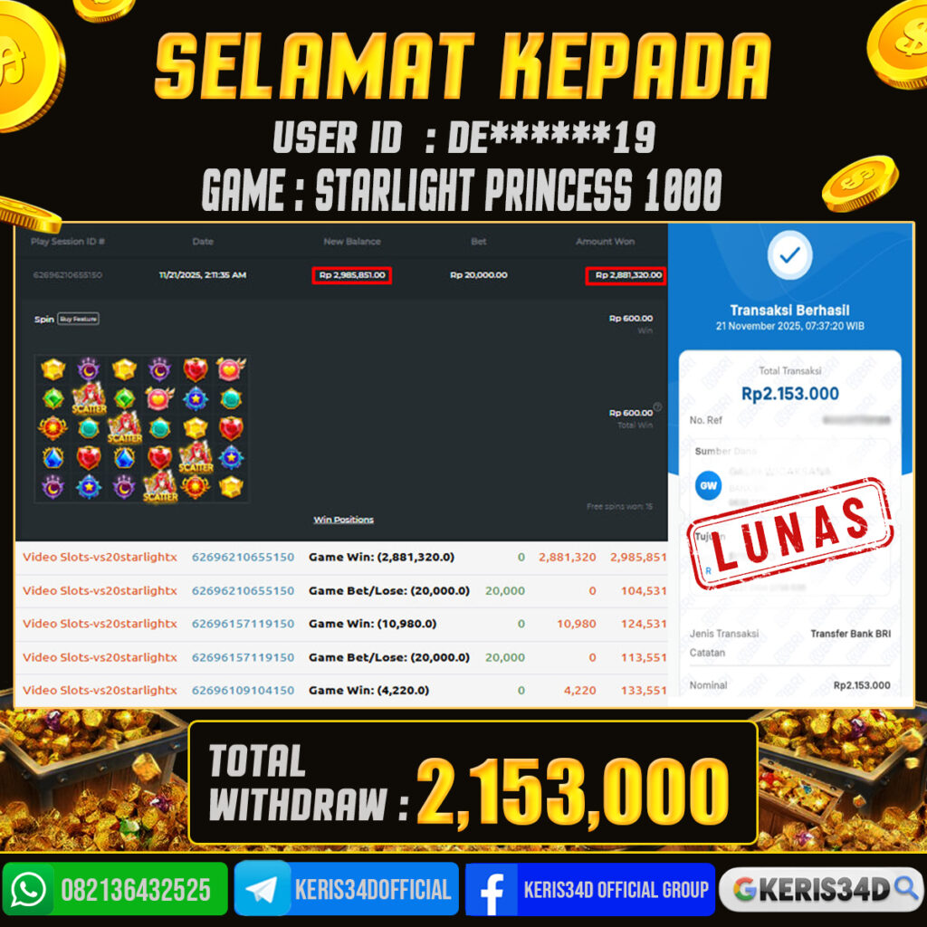 JACKPOT SLOT GACOR STARLIGHT PRINCESS 1000 21 NOVEMBER 2025, Jackpot Slot Gacor, Kemenangan Slot, Bukti Kemenangan Slot, Kemenangan PRAGMATIC PLAY, Menang Slot online, Slot Gacor, Situs Aman Terpercaya, WD Berapapun Pasti DI Bayar Tuntas, Maxwin Slot Online.