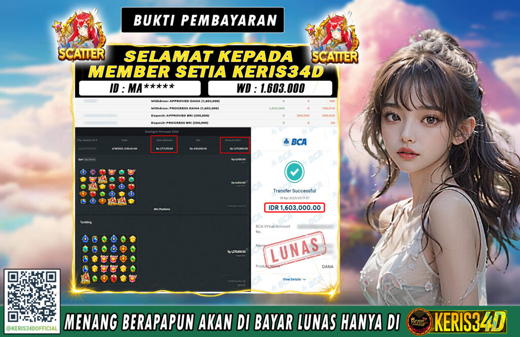 SSetiap hari, member KERIS34D berhasil meraih jackpot besar dari berbagai provider slot ternama yang kami sediakan, seperti Pragmatic Play, Habanero, PG Soft, dan masih banyak lagi. Kami secara rutin menampilkan bukti screenshot atau rekapan kemenangan yang berhasil diraih, mulai dari kemenangan ratusan ribu hingga puluhan juta rupiah. Semua slip kemenangan ini kami hadirkan untuk membuktikan bahwa di KERIS34D, peluang menang itu nyata