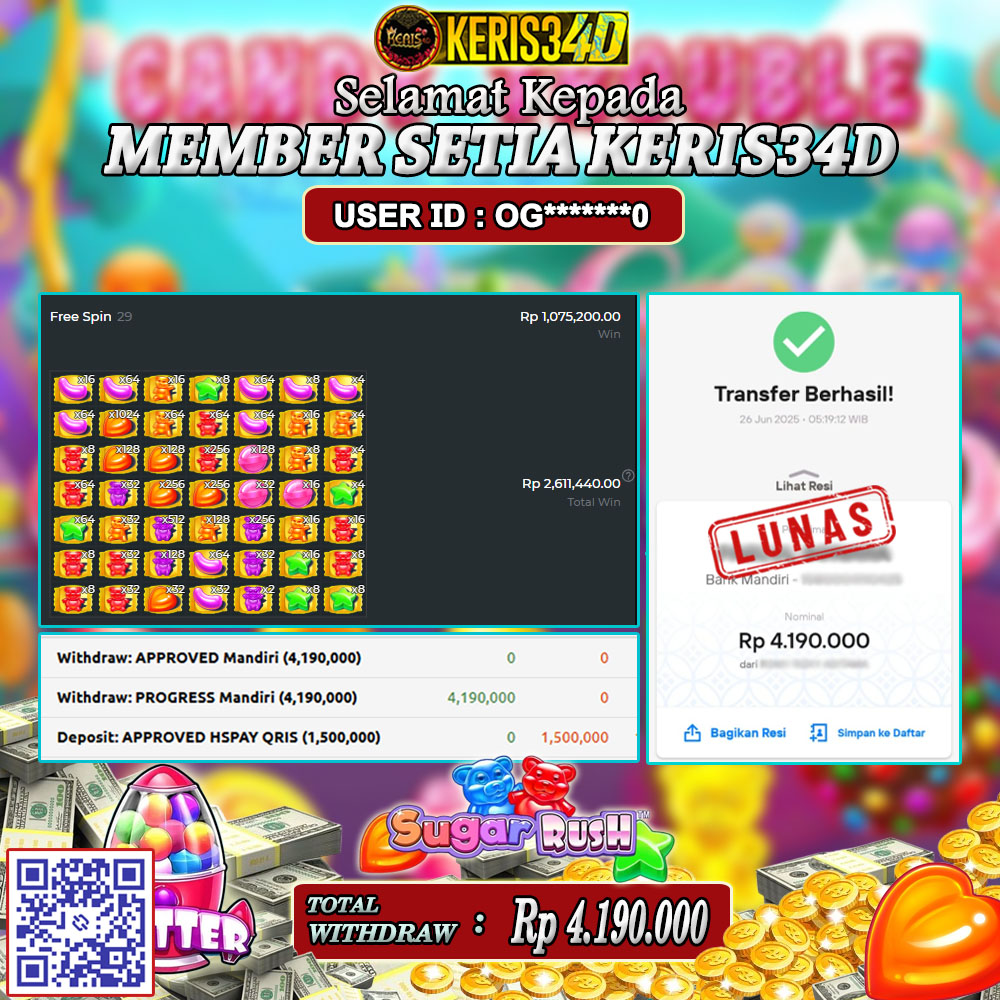 Setiap hari, member KERIS34D berhasil meraih jackpot besar dari berbagai provider slot ternama yang kami sediakan, seperti Pragmatic Play, Habanero, PG Soft, dan masih banyak lagi. Kami secara rutin menampilkan bukti screenshot atau rekapan kemenangan yang berhasil diraih, mulai dari kemenangan ratusan ribu hingga puluhan juta rupiah. Semua slip kemenangan ini kami hadirkan untuk membuktikan bahwa di KERIS34D, peluang menang itu nyata