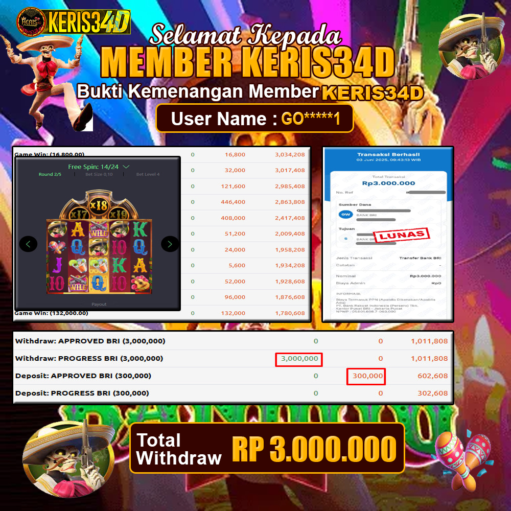 TOTAL KEMENANGAN : Rp. 3.000.000