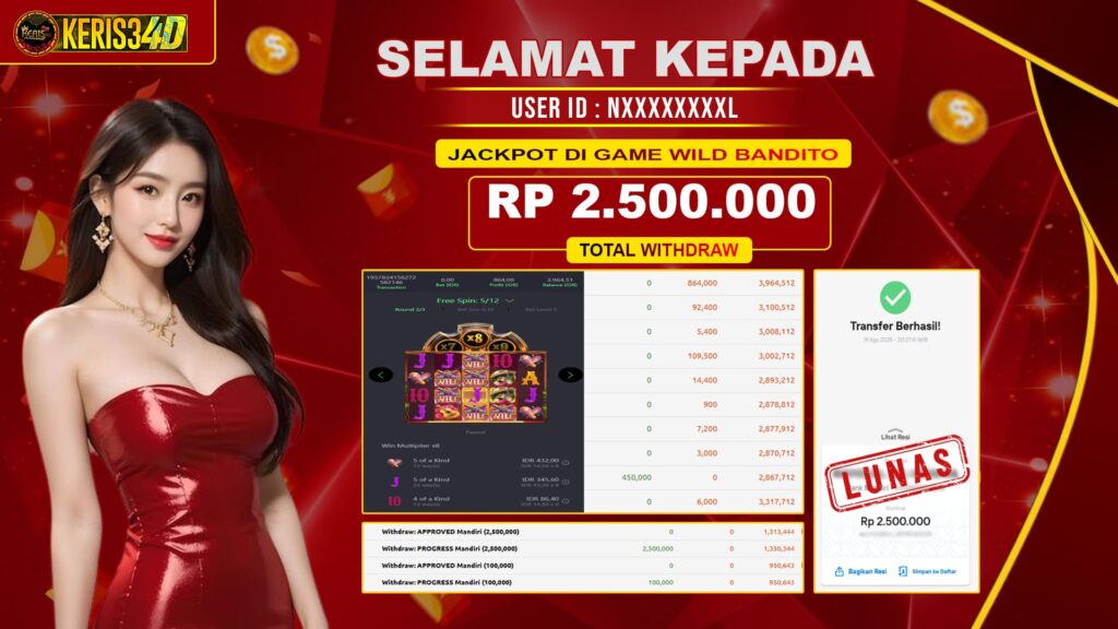 KERIS34D dikenal sebagai situs terpercaya yang selalu menghadirkan pengalaman bermain slot online yang aman, fair, dan berlisensi resmi. Di sini, kami tidak hanya sekadar memberikan janji, tapi bukti nyata berupa slip kemenangan yang dapat Anda lihat secara langsung.