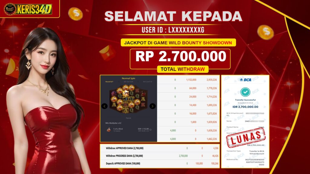 Setiap hari, member KERIS34D berhasil meraih jackpot besar dari berbagai provider slot ternama yang kami sediakan, seperti Pragmatic Play, Habanero, PG Soft, dan masih banyak lagi. Kami secara rutin menampilkan bukti screenshot atau rekapan kemenangan yang berhasil diraih, mulai dari kemenangan ratusan ribu hingga puluhan juta rupiah. Semua slip kemenangan ini kami hadirkan untuk membuktikan bahwa di KERIS34D, peluang menang itu nyata