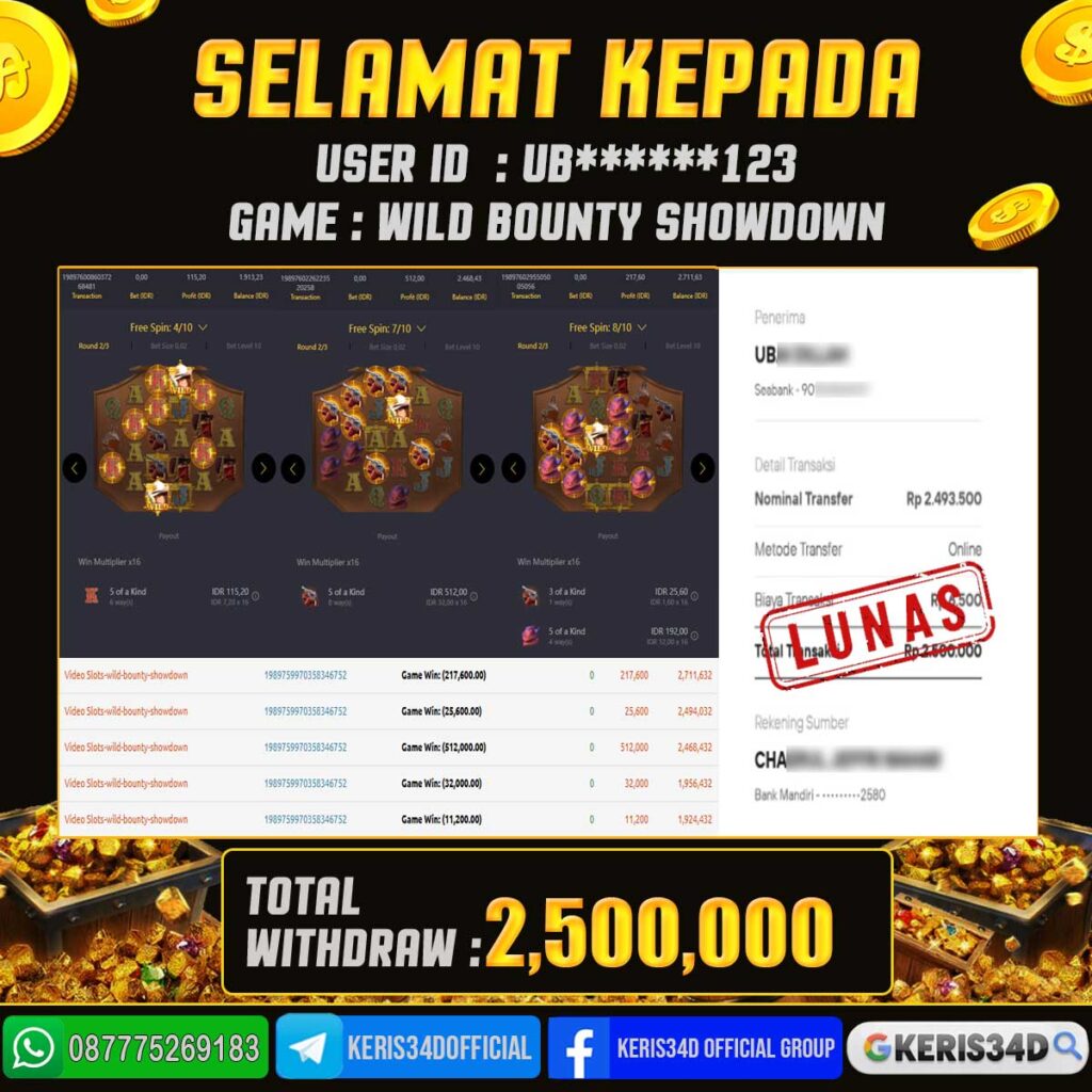 Setiap hari, member KERIS34D berhasil meraih jackpot besar dari berbagai provider slot ternama yang kami sediakan, seperti Pragmatic Play, Habanero, PG Soft, dan masih banyak lagi. Kami secara rutin menampilkan bukti screenshot atau rekapan kemenangan yang berhasil diraih, mulai dari kemenangan ratusan ribu hingga puluhan juta rupiah. Semua slip kemenangan ini kami hadirkan untuk membuktikan bahwa di KERIS34D, peluang menang itu nyata