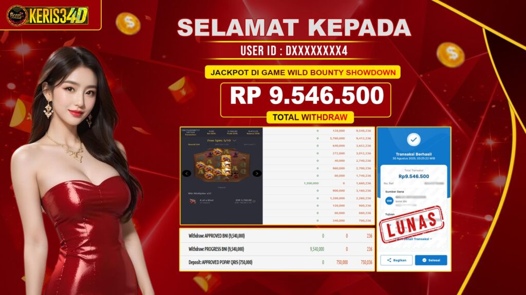 KERIS34D dikenal sebagai situs terpercaya yang selalu menghadirkan pengalaman bermain slot online yang aman, fair, dan berlisensi resmi. Di sini, kami tidak hanya sekadar memberikan janji, tapi bukti nyata berupa slip kemenangan yang dapat Anda lihat secara langsung.