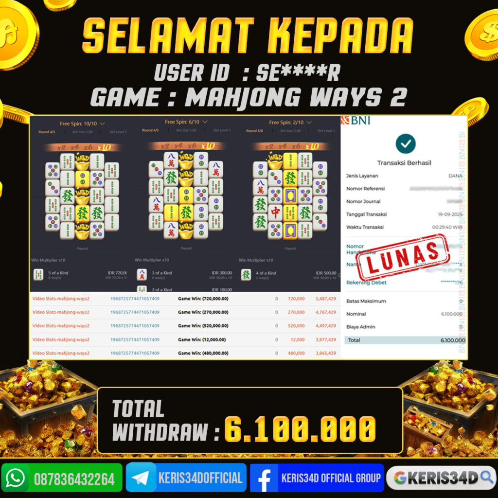 JACKPOT SLOT GACOR MAIN MAHJONG WAYS 2 19 SEPTEMBER 2025, Jackpot Slot Gacor, Kemenangan Slot, Bukti Kemenangan Slot, Kemenangan PGSOFT, Menang Slot online, Slot Gacor, Situs Aman Terpercaya, WD Berapapun Pasti DI Bayar Tuntas, Maxwin Slot Online.